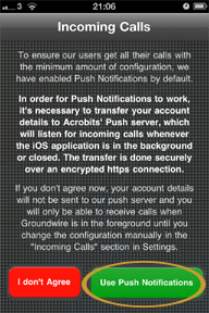 Groundwire fromAcrobits is an iPhone app that can be purchased in App store. You can connect it to Sonetel and use it for making and receiving calls. Calls are connected across the Internet (3G, WiFi etc.) to and from Sonetel. Making calls across mobile internet connections does usually not provide good enough call quality for having business calls. We recommend that you use the Sonetel iPhone app, which uses a regular mobile call to connect locally to Sonetel. If you want to try Groundwire anyway, please find the instructions below. Groundwire supports multiple ongoing calls, call conferencing and call transfer. Acrobits also has a cheaper version that does not support Call transfer and conference calls.