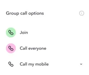 In the new group chat click on the Phone symbol. This will present you with the following options.