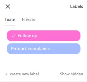 You can add one or more colored labels to any message or conversation. This allows you to mark conversations or messages that are important or need to be categorized. In the search function you can later find all conversations where any specific label is used. You can add labels to Conversations by doing the following;