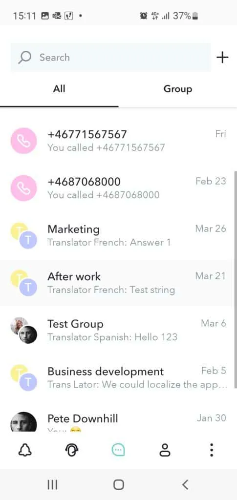 Conversations will be named by your contact, team member, chat group or phone number called. The most recently updated conversation will be on top of the list.