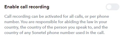 You can activate Call recording in the Sonetel web app for all calls company wide - or selectively.