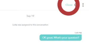 Once a conversation with the customer or prospect is completed, select the Close option to close the conversation. The customer can reopen the conversation later - in which case you will be notified and get the conversation in your inbox. In the mobile apps you find the Close option under the menu (upper right) in each customer conversation.