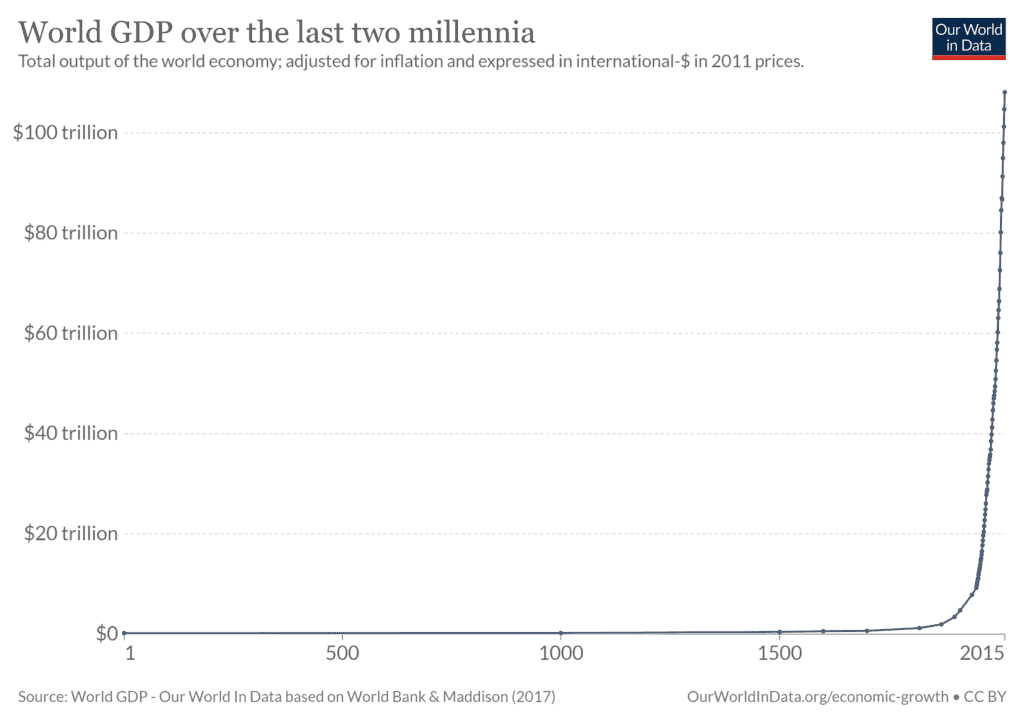 The wealth generated grew exponentially - allowing radical population growth to go hand in hand with radical decline in poverty.