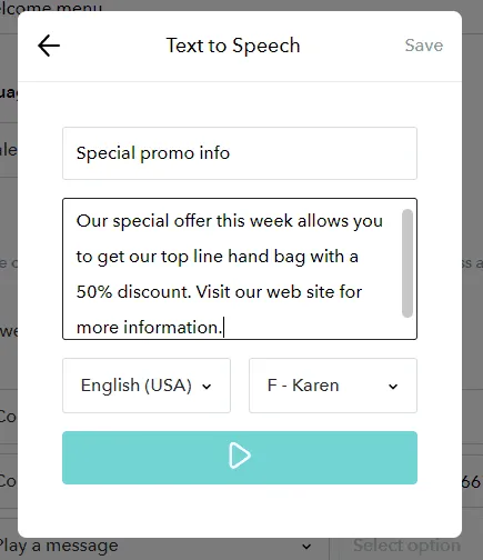 A continuación, puedes ver cómo funciona la función de texto a voz. Puedes escuchar el resultado antes de guardarlo.