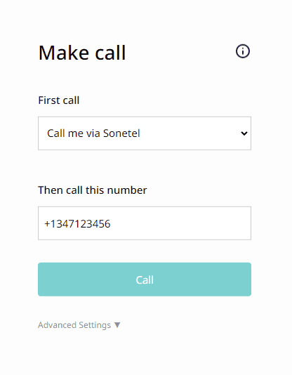 - Appelez-moi via Sonetel Notre système utilisera vos paramètres d'appels entrants pour décider où l'appel doit être connecté. Cela signifie que nous pouvons sonner dans l'application web en premier - si vous êtes connecté et que vous avez activé cette option dans vos paramètres d'appel. Si vous ne répondez pas à l'appel dans l'application web, il sonnera normalement sur votre numéro de mobile à la place.