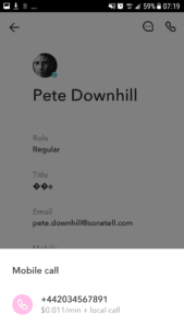 - Gratuit Cette option est proposée si la personne que vous appelez est un utilisateur Sonetel. L'appel passera par Internet entre vous et la personne que vous appelez. La personne appelée peut toutefois avoir configuré ses paramètres de renvoi d'appel pour transférer l'appel vers son mobile. Si la personne appelée se trouve dans une autre entreprise, elle paierait pour ce renvoi d'appel.