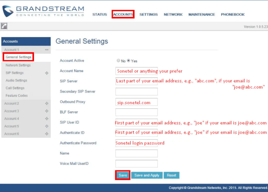 以下は、Grandstream電話機をSonetelに接続する手順です。