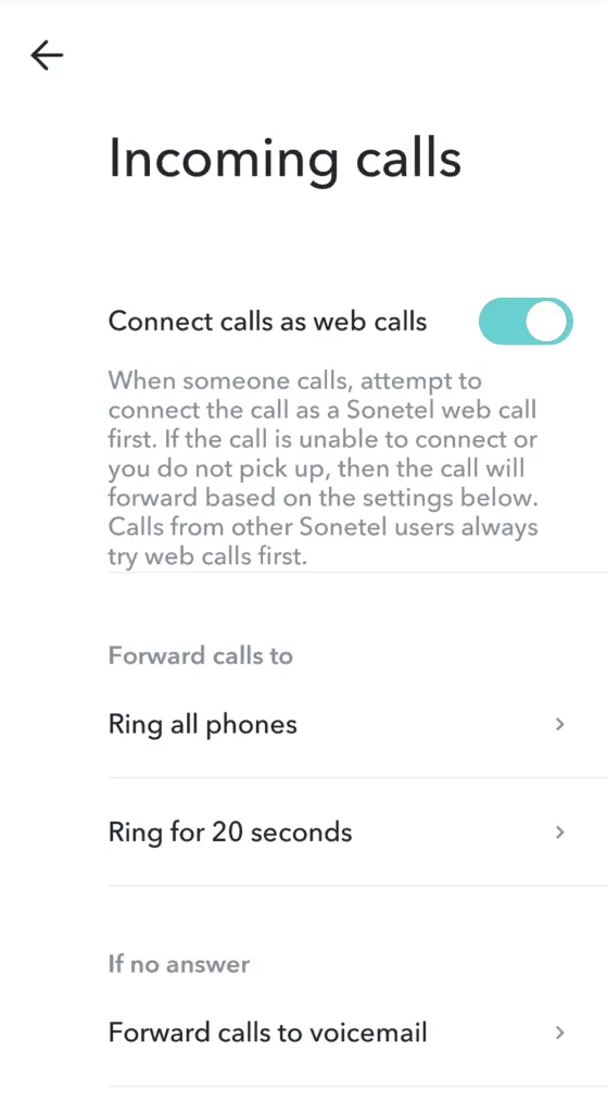 Ustawienia połączeń przychodzących pozwalają zdecydować, gdzie połączenia przychodzące do Pana/Pani powinny dzwonić - i być przekierowywane. Połączenia przychodzące mogą docierać do Pana/Pani przez numer telefonu Sonetel - połączony z Panem/Panią - lub być wykonywane przez innych członków zespołu lub użytkowników Sonetel.