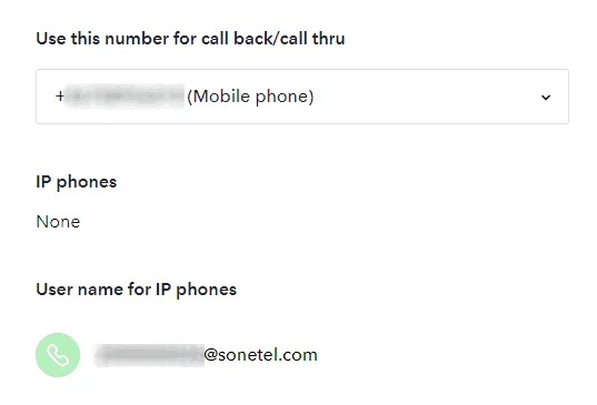 - Użyj tego numeru do oddzwaniania/połączenia przez. Jeśli wykonuje Pan/Pani połączenia z opcją "Komórkowa" dla lepszej jakości połączenia, zwykłe połączenie komórkowe jest ustanawiane między Panem/Panią a Sonetel - zamiast połączenia internetowego. Jeśli posiada Pan/Pani wiele numerów komórkowych w profilu Sonetel, będzie musiał Pan/Pani poinformować system, który powinien być używany do oddzwaniania itp. Jeśli zadzwonimy pod niewłaściwy numer - lub będziemy oczekiwać połączeń z innego numeru - nie będziemy w stanie połączyć połączenia.