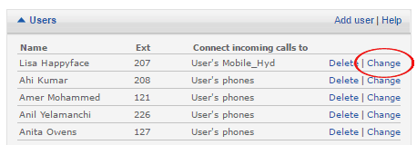 3. Click on Change next to the User.