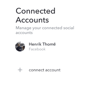I webbappen hittar du dina anslutna konton genom att klicka på inställningsikonen längst ner till vänster och sedan på Mina inställningar -> Anslutna konton. I mobilapparna hittar du de personliga inställningarna via menyalternativet längst till höger.