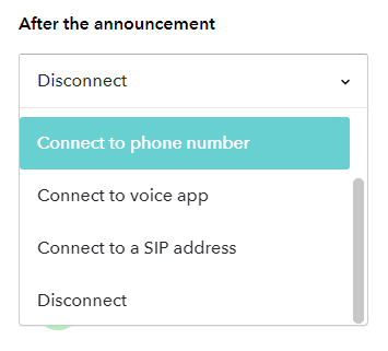 - After the announcement Definiera vad som ska hända efter att meddelandet har spelats upp för uppringaren.