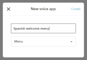 - Meny Spelar upp ett meddelande som erbjuder uppringaren "Tryck 1 för försäljning eller 2 för support" eller vad du än föredrar att det ska säga. Beroende på vad uppringaren väljer med sin knappsats på telefonen (0-9), kan du antingen spela upp inspelad information eller vidarekoppla samtalet till en användare, ett telefonnummer eller en annan voice app eller SIP-adress.